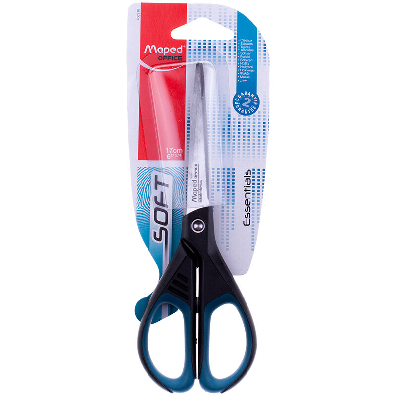 Ножницы MAPED (Франция) "Essentials Soft", 170 мм, прорезиненные ручки, черно-синие, картонная упаковка с европодвесом, 468210, 467210, 468210