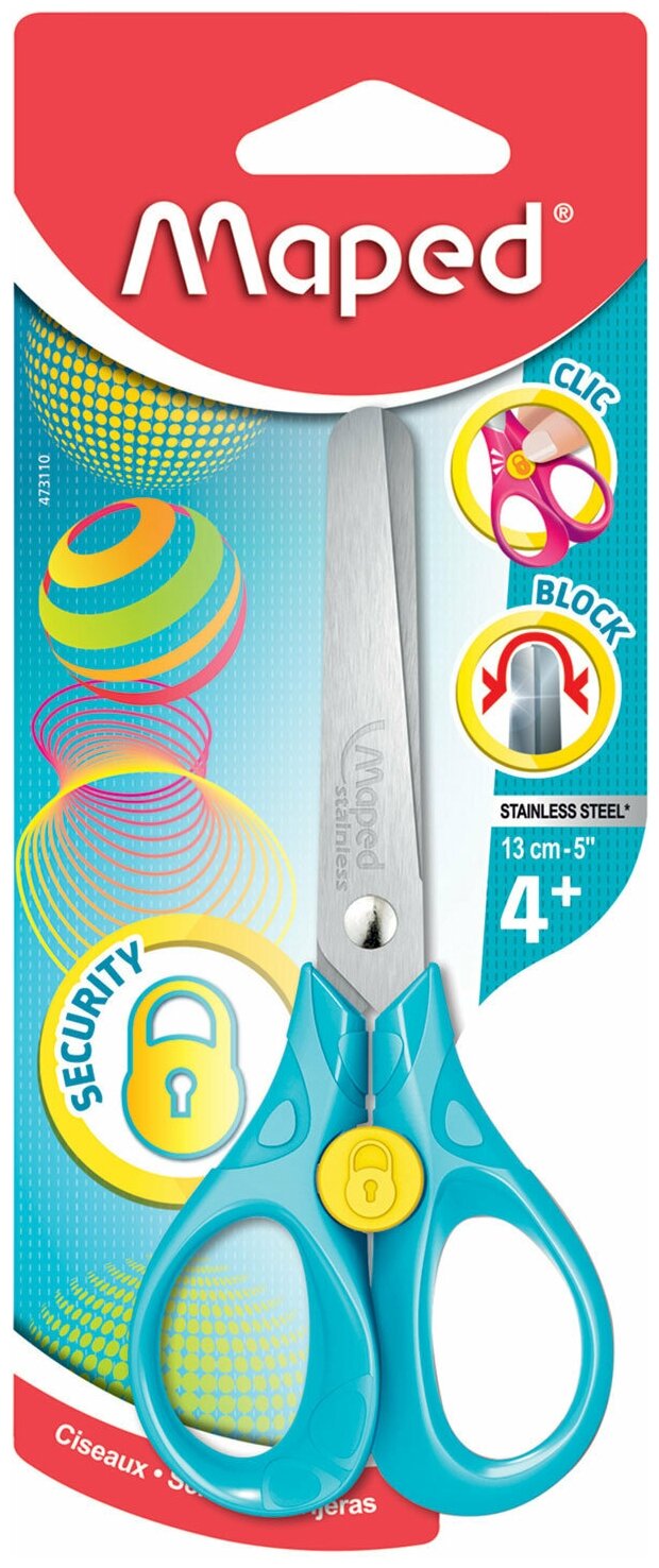 Ножницы MAPED (Франция) "Security 3D", 130 мм, с блокировкой лезвий, цвет ассорти, блистер, 473110