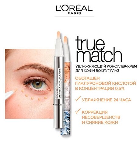 Увлажняющий консилер-крем L'OREAL PARIS True Match для кожи вокруг глаз, тон 3-5.5R персиковый