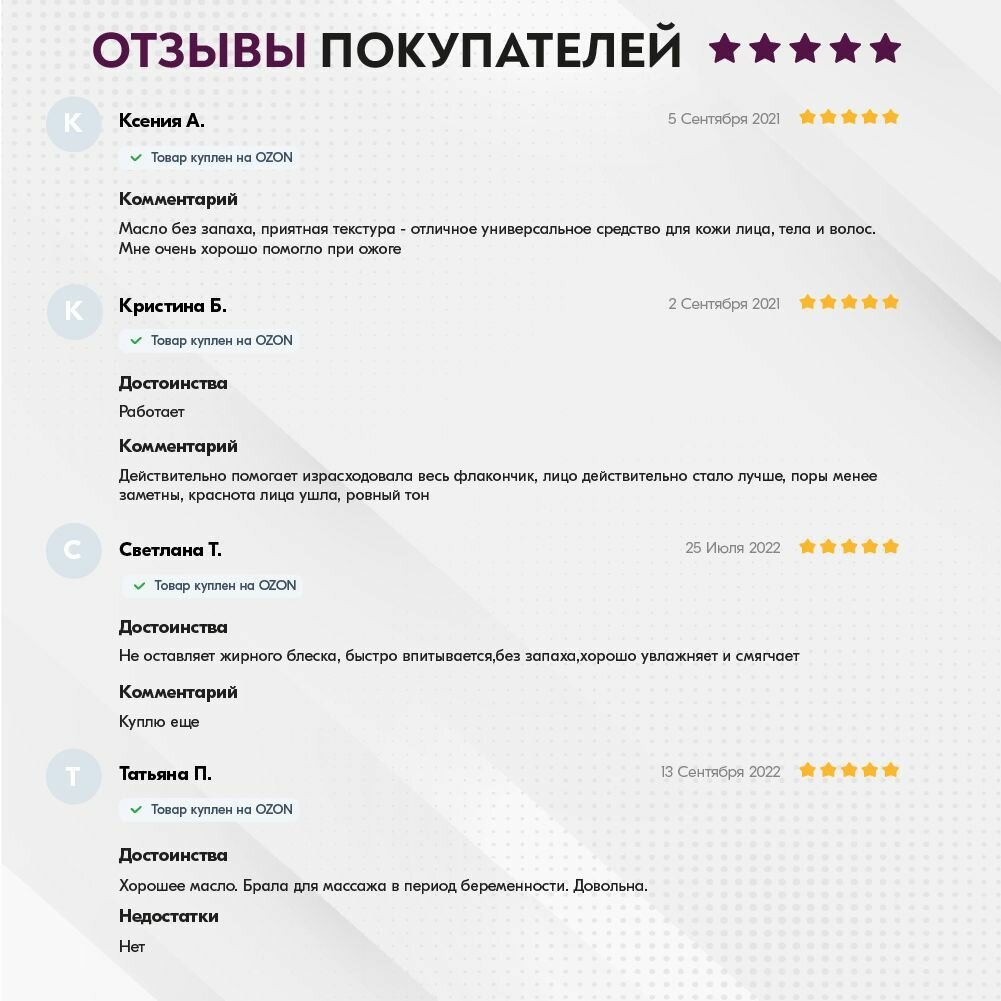| Отзыв: | Масло отличное, единственный минус - дороговато. Есть аналоги в два раза дешевле, но ими ещё не пользовалась. |