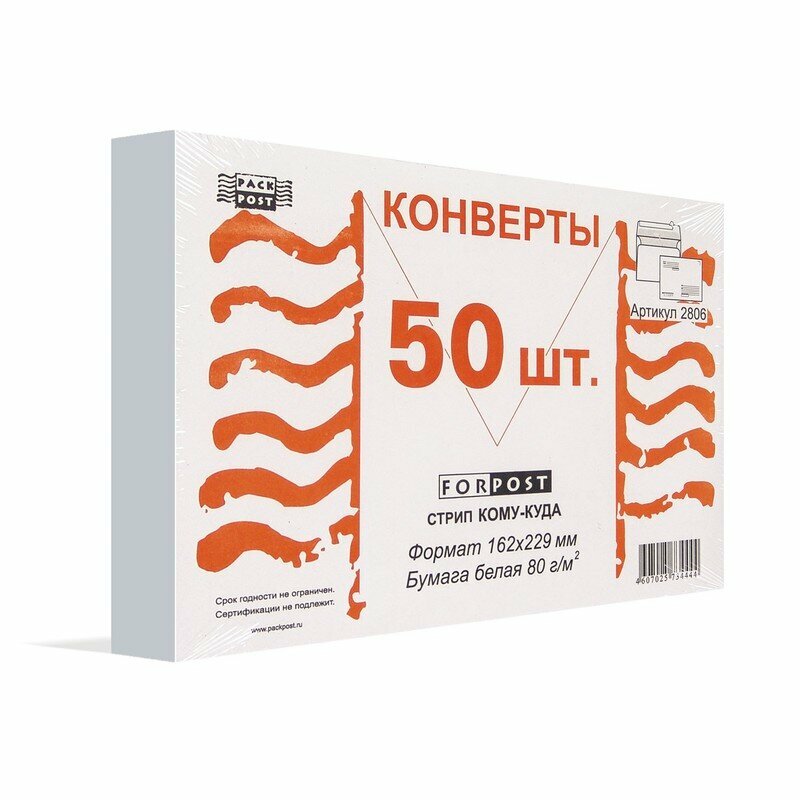 Купить Конверт С5 Куда-Кому стрип 162х229 мм ForPost 50 штук в упаковке, 76327