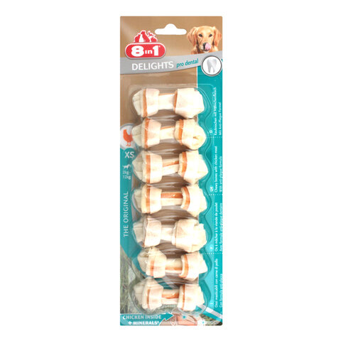 Купить 8в1 DENTAL DELIGHTS XS косточки с куриным мясом для мелких собак с минералами 7,5 см 7 шт