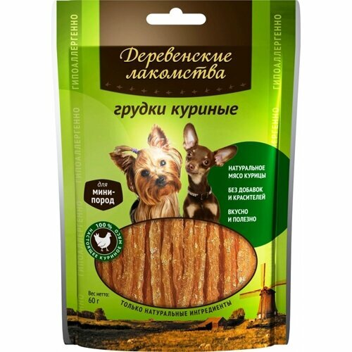 Деревенские лакомства Грудки куриные для мини-пород, 60 гр, Деревенские лакомства