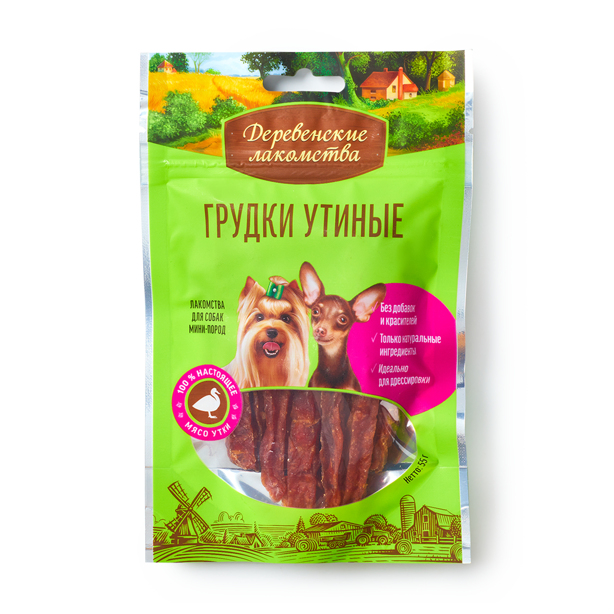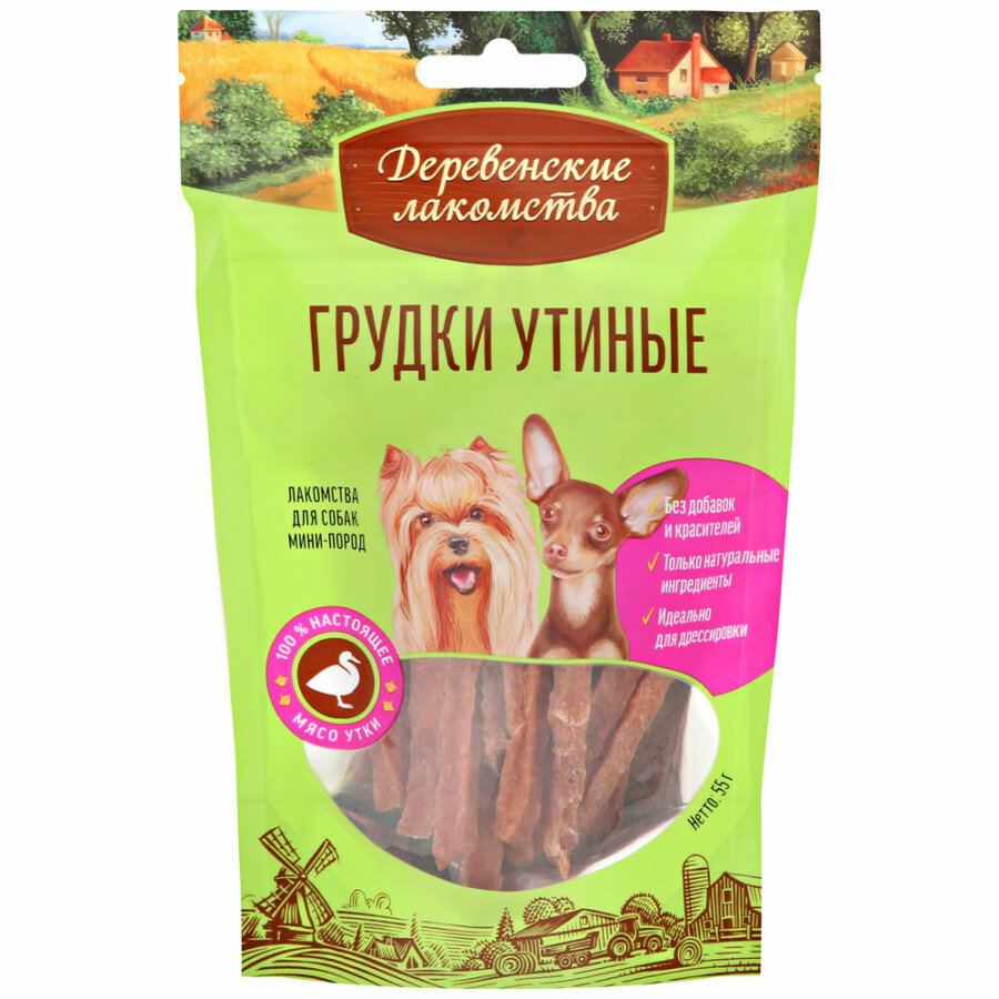 Деревенские лакомства Грудки утиные для мини-пород, 55г 0.055 кг