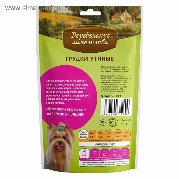 Лакомство Деревенские Лакомства для мини-пород Грудки утиные 60 г
