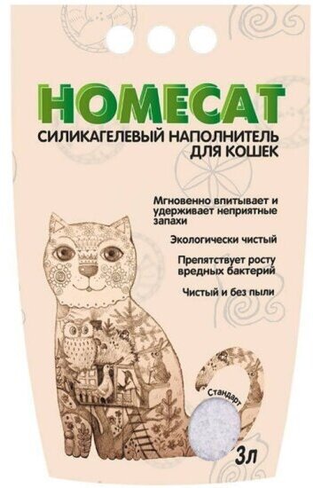 HOMECAT наполнитель силикагелевый впитывающий Стандарт 3 кг., 7,6 л.