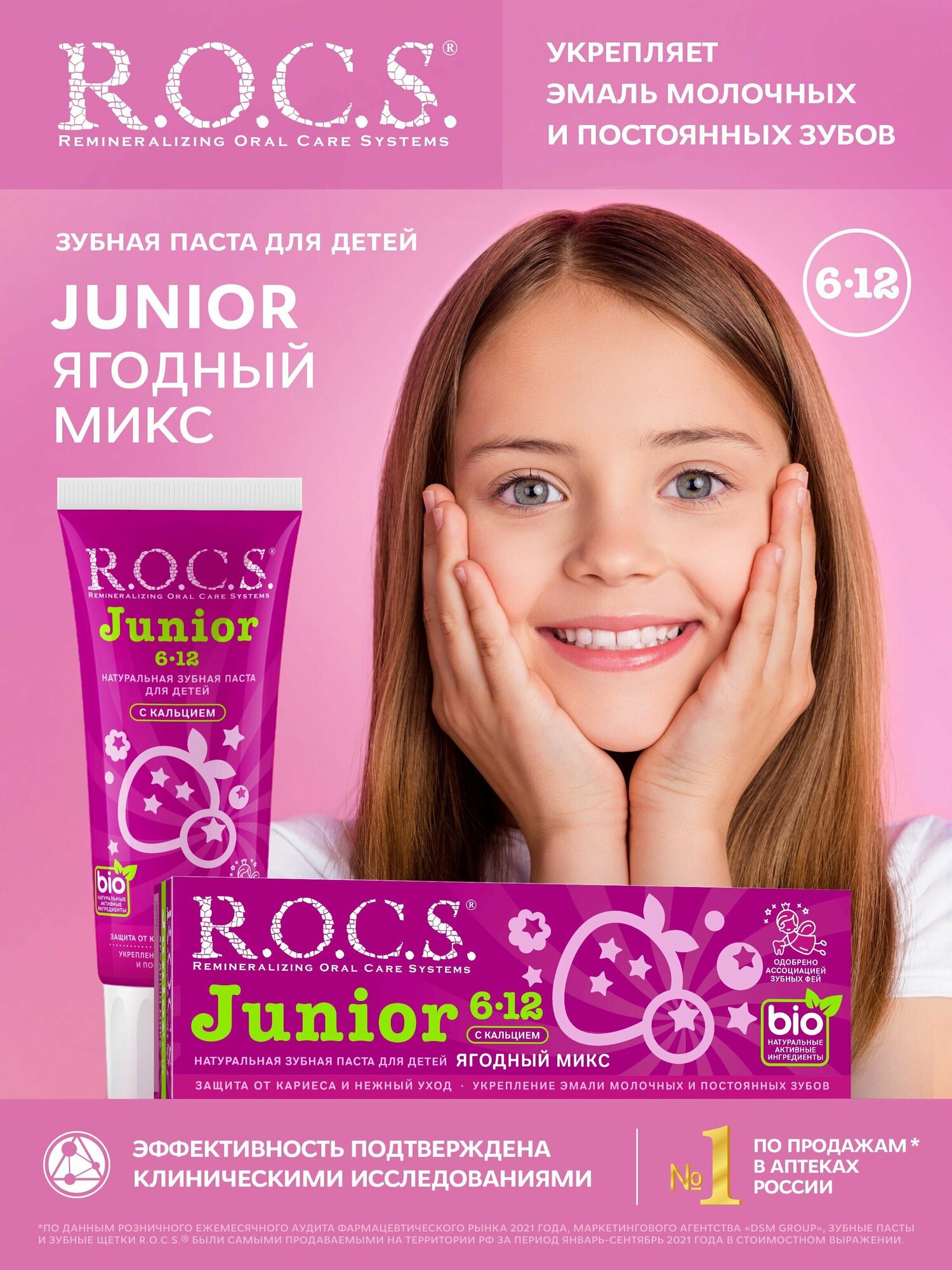 R.O.C.S. Зубная паста Junior Ягодный микс для детей 6-12 лет 74г