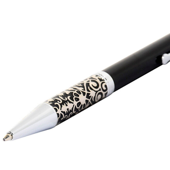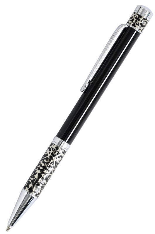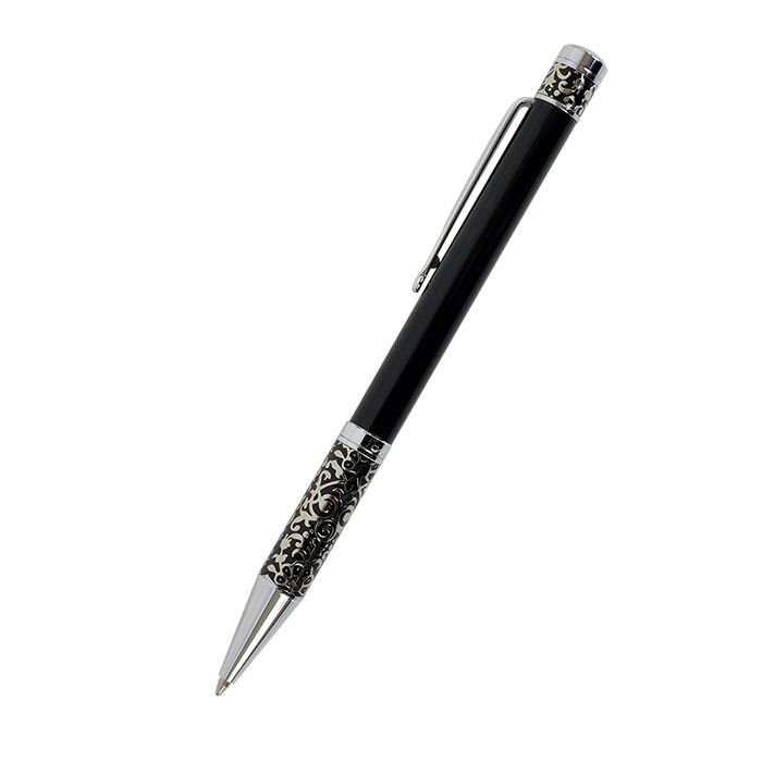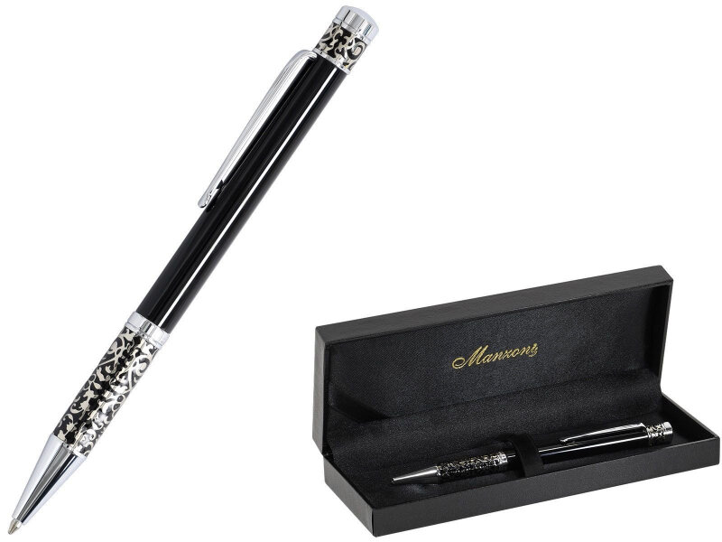 Ручка в футляре механическая (поворотная) Marinella 1,0мм металлический черный/серебристый корпус синяя (картонная упаковка) (16018)