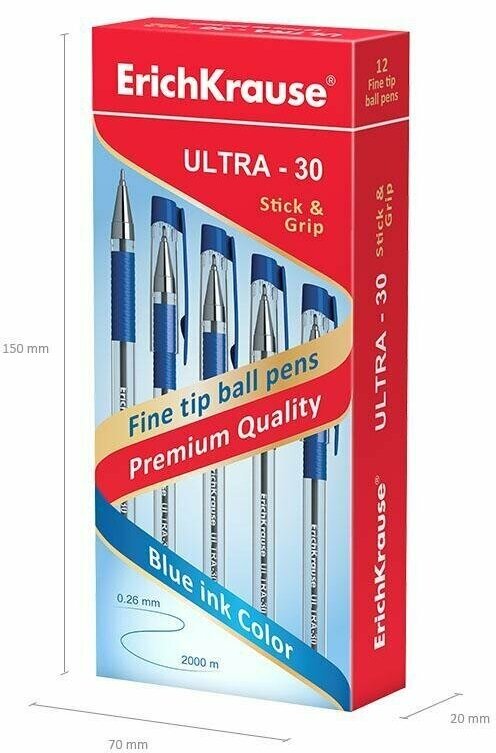 Ручка шариковая ErichKrause ULTRA-30, цвет чернил синий (в коробке по 12 шт.)