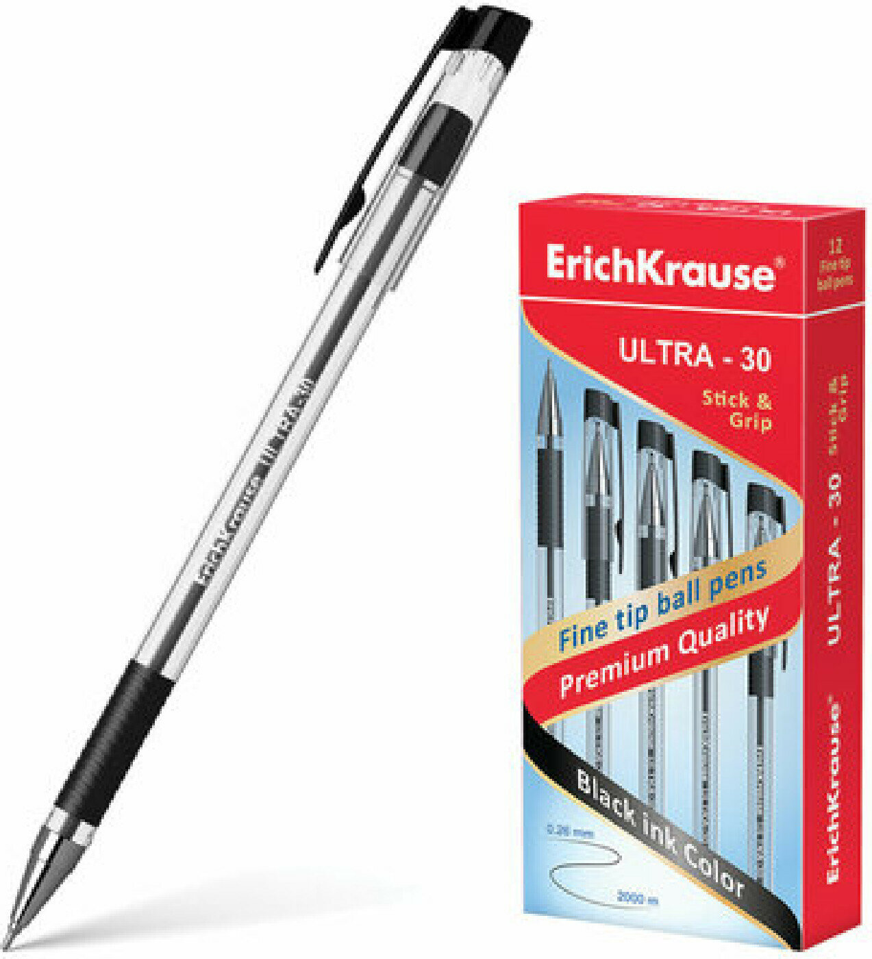 Ручка шариковая ErichKrause ULTRA-30, цвет чернил черный (в коробке по 12 шт.)