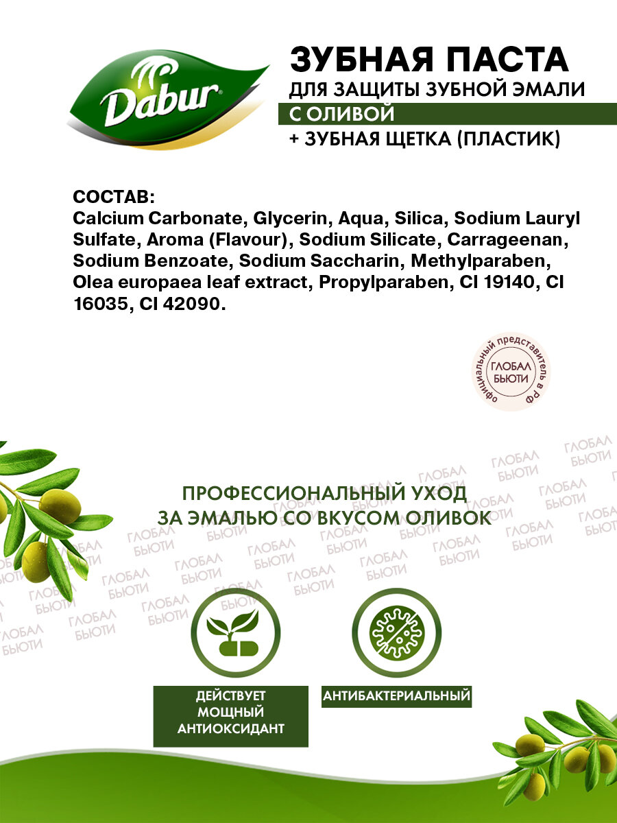 Купить DABUR Зубная паста для защиты зубной эмали с оливой + зубная щетка (пластик)