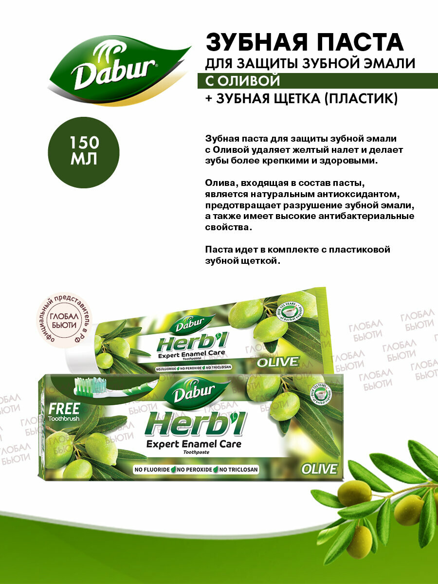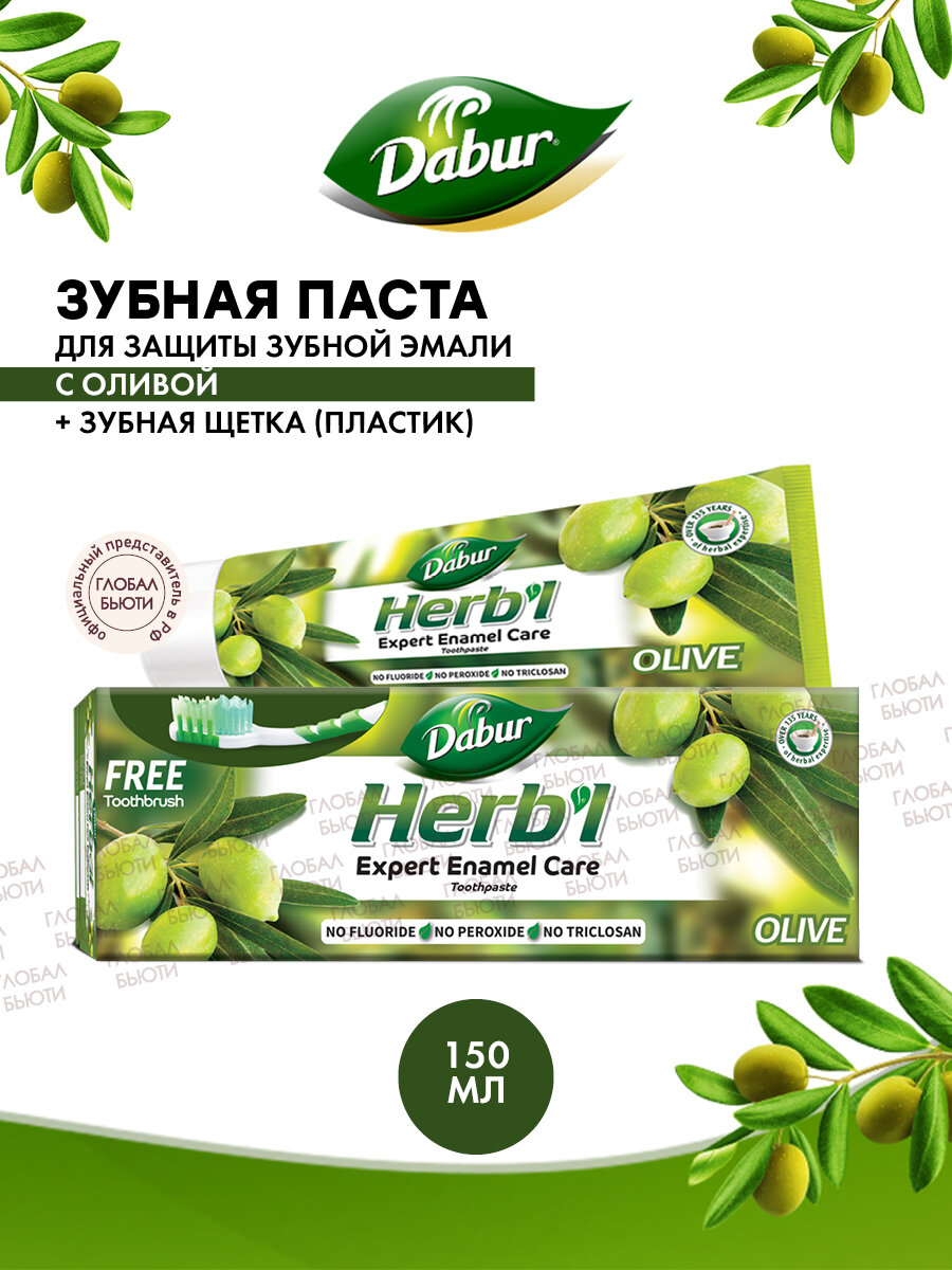 Зубная паста Dabur Herb’l Olive (с экстрактом оливы) 150 гр. в комплекте с зубной щеткой
