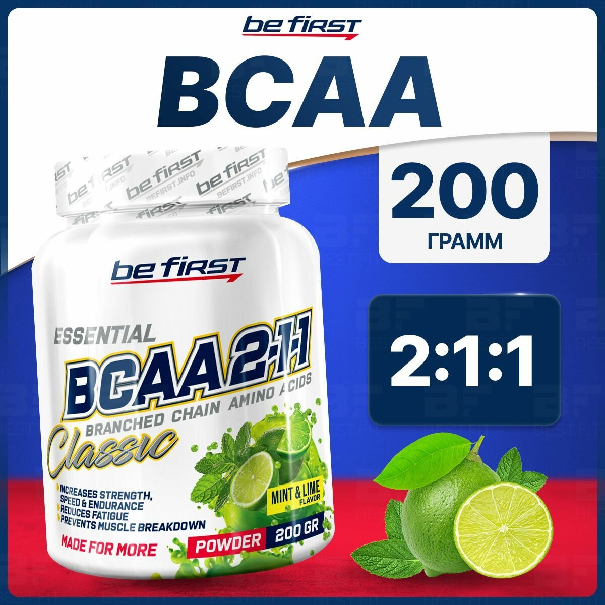 Купить Be First BCAA 2:1:1 CLASSIC powder 200 гр (Мята лайм)