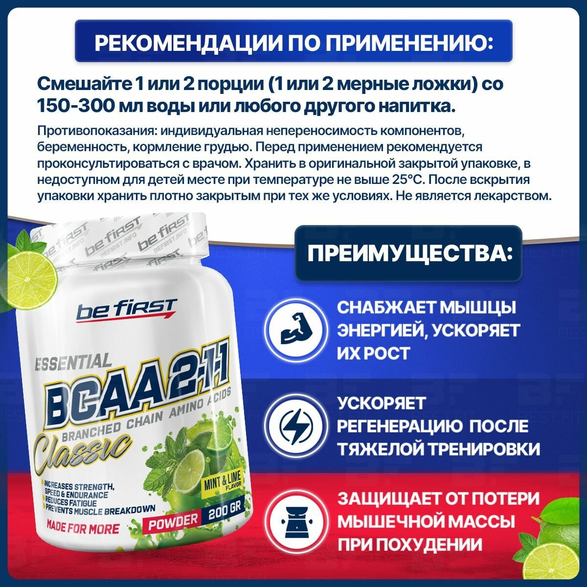 BeFirst, BCAA 2:1:1 Classic powder, 200г (мята-лайм)