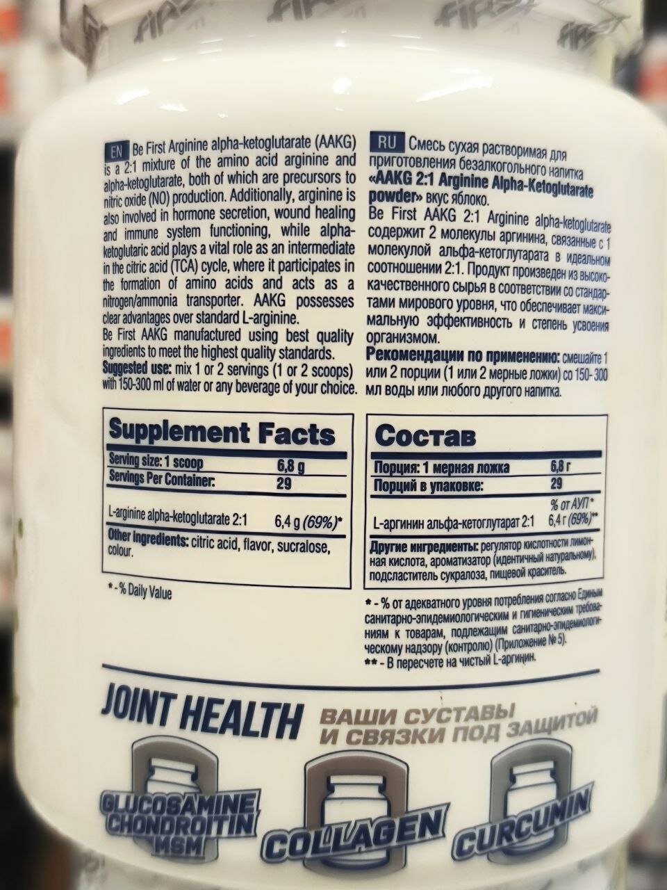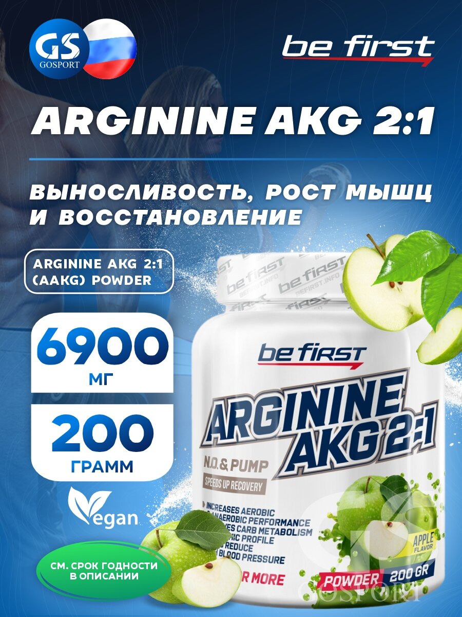 Аргинин альфа-кетоглутарат (аакг) порошок Be First Arginine AAKG 2:1 Powder, 200 г - Спортивная добавка для усиленного питания мышц, повышающая работоспособность и скорость восстановления