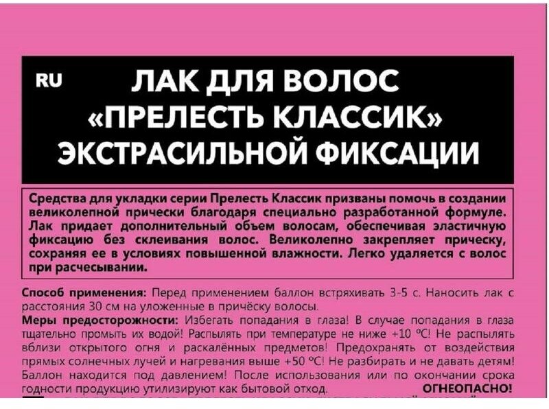 Лак для волос прелесть-классик экстра