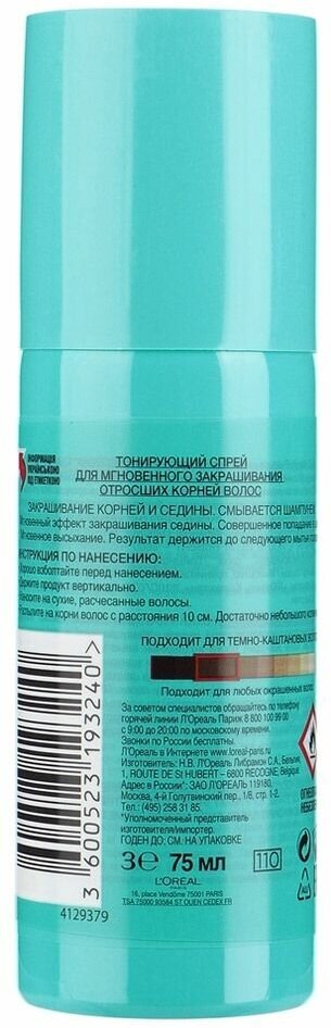 Тонирующий спрей L'OREAL PARIS для мгновенного закрашивания отросших корней Magic Retouch, оттенок Темно-каштановый, 75 мл