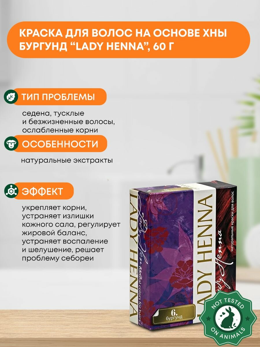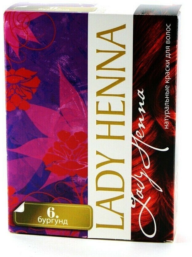 Краска для волос на основе хны, бургунд №6, Lady Henna