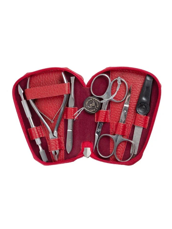 Купить Маникюрный набор на молнии, ZINGER, трапеция, MS-7103, 6 предметов, чехол красный