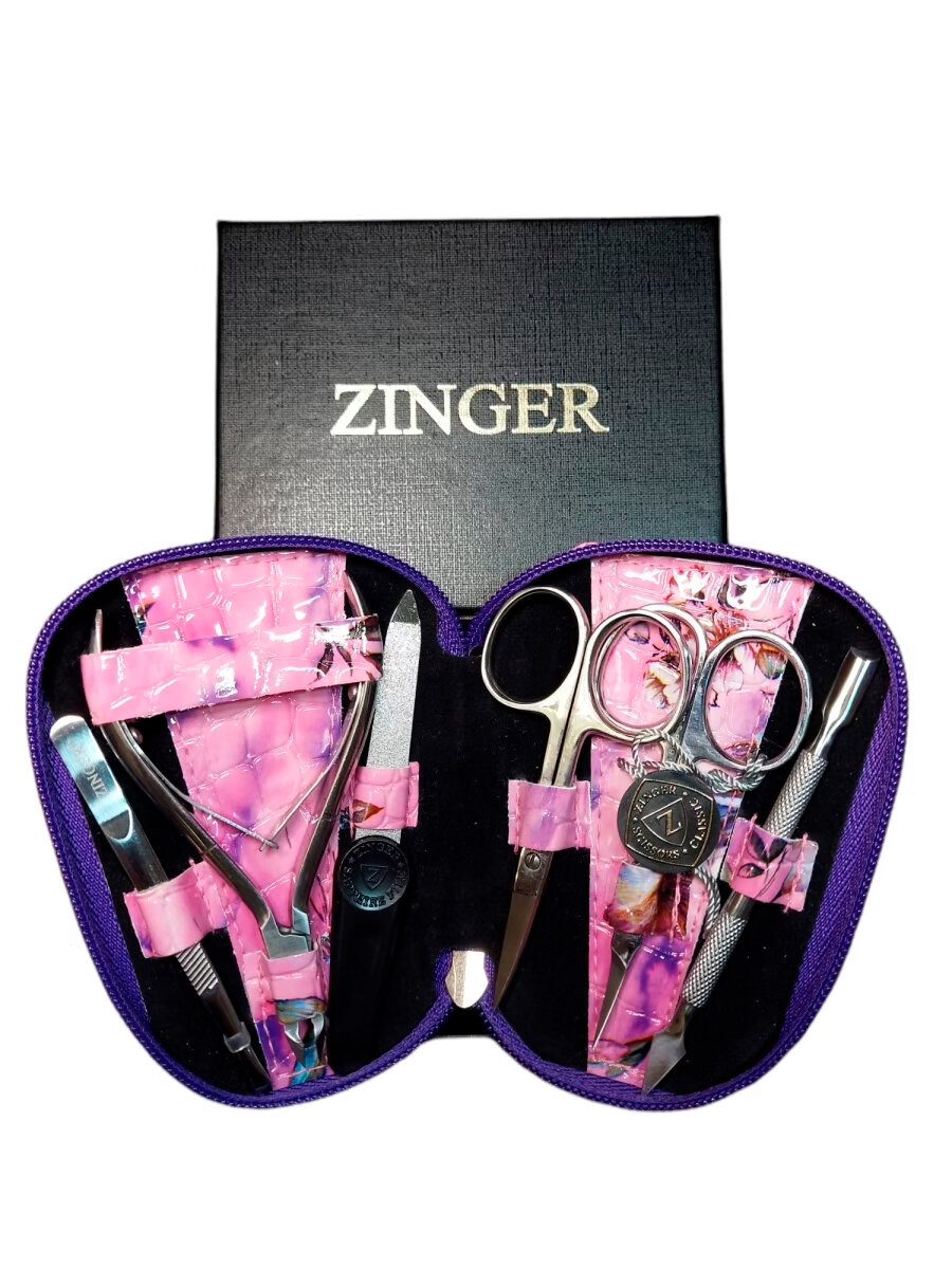 Купить Маникюрный набор MS-7103, ZINGER, 6 предметов, чехол цветы, розовый