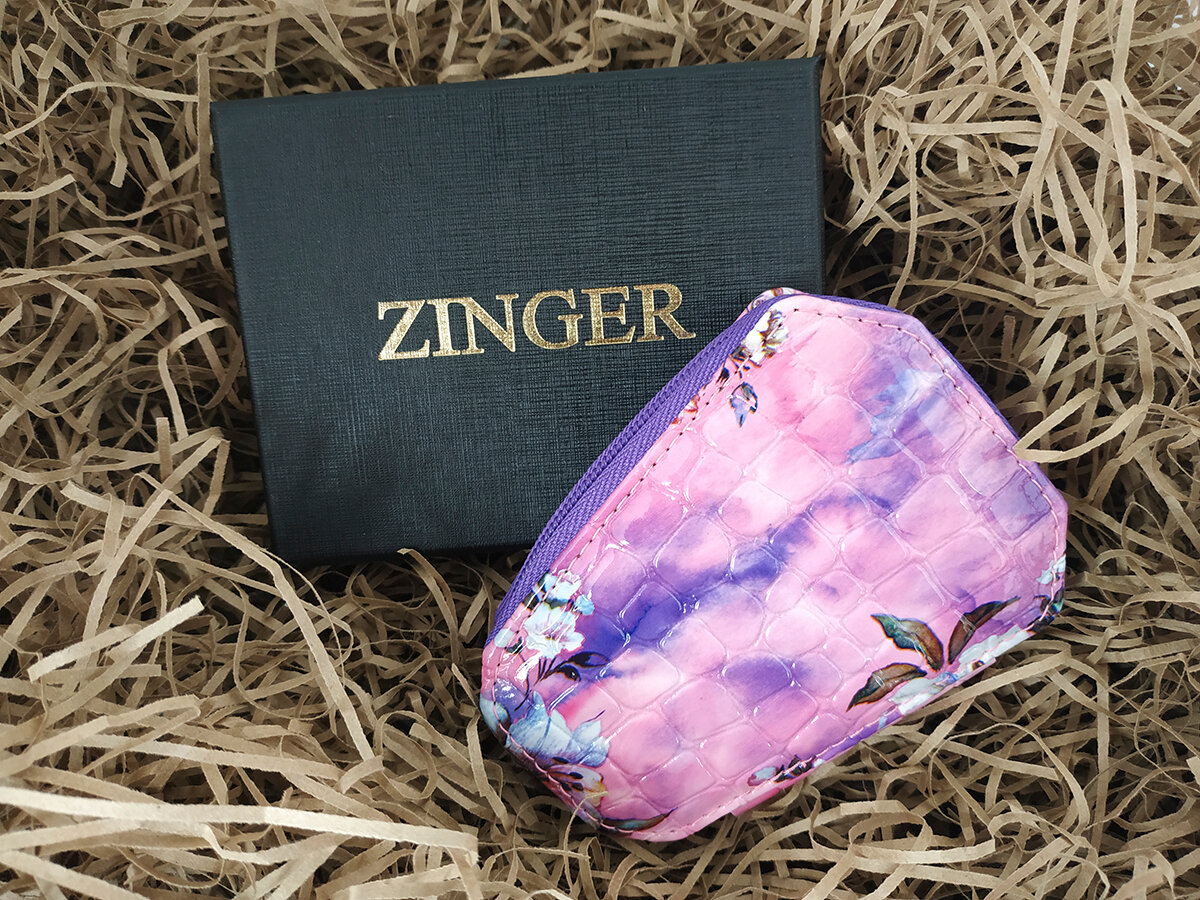Маникюрный набор на молнии, ZINGER, трапеция, MS-7103, 6 предметов, чехол цветы, фиолетовый
