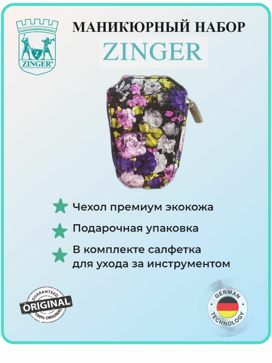 Маникюрный набор, ZINGER, MS-7103, 6 предметов, чехол цветы