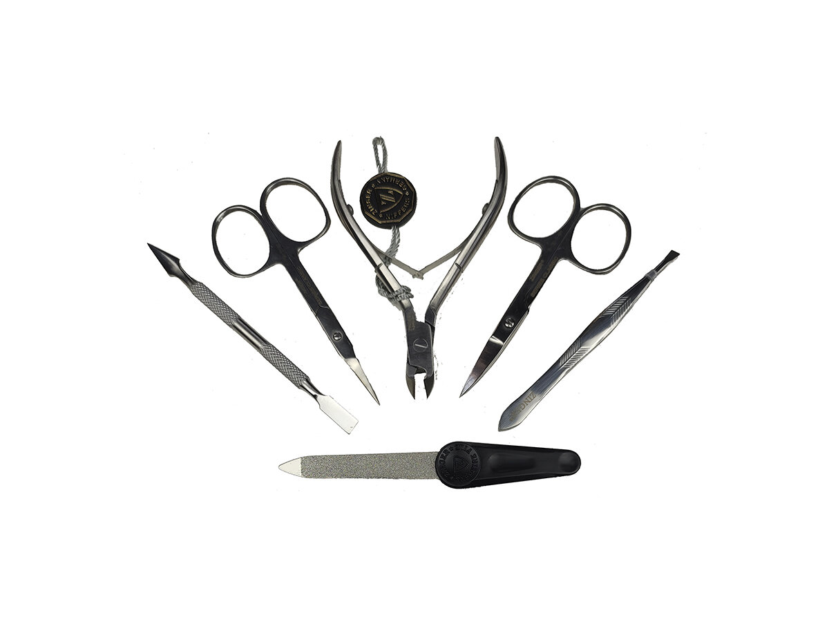 Разочарован качеством ножниц. В наборе их пара - все люфтят при использовании. Постригать ими неудобно. Другое дело кусачки. Работают хорошо, точно. Хорошо заточены. Ножницы заменил на качественные, купив их в обычном магазине. Набор удобный, компактный. Буду брать его в дорогу (командировки, отпуск и т.п.) |