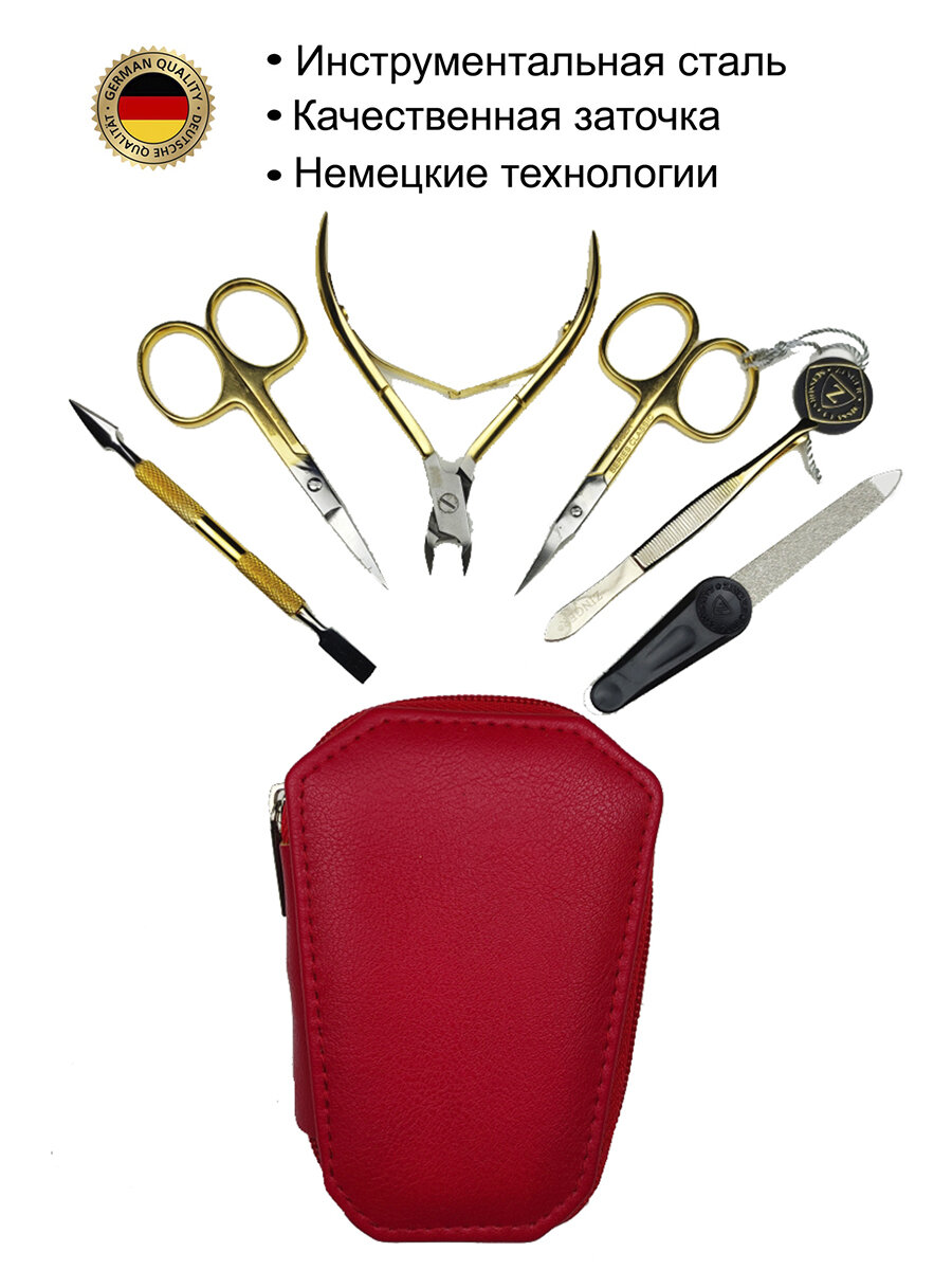 Купить Маникюрный набор, ZINGER, MS-7103, 6 предметов, чехол алый (инструмент золото/серебро)