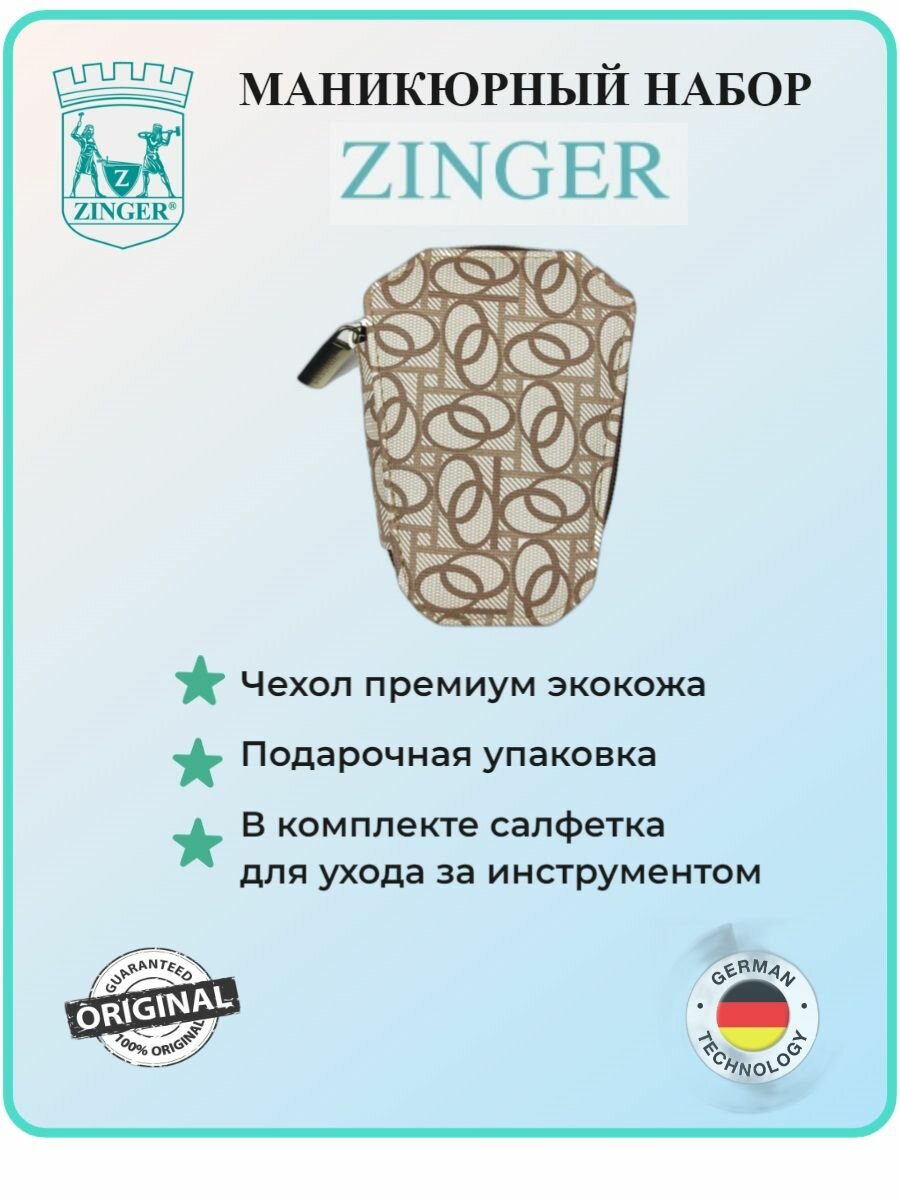 Маникюрный набор Zinger 7103, 6 предметов, коричневая клетка