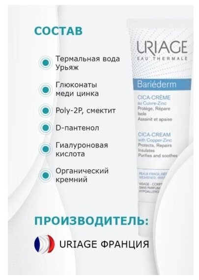 URIAGE, Bariederm Цика-крем с медью и цинком SPF50+, для поврежденной и раздраженной кожи / Заживляющее восстанавливающее средство для детей и взрослых, 40 мл