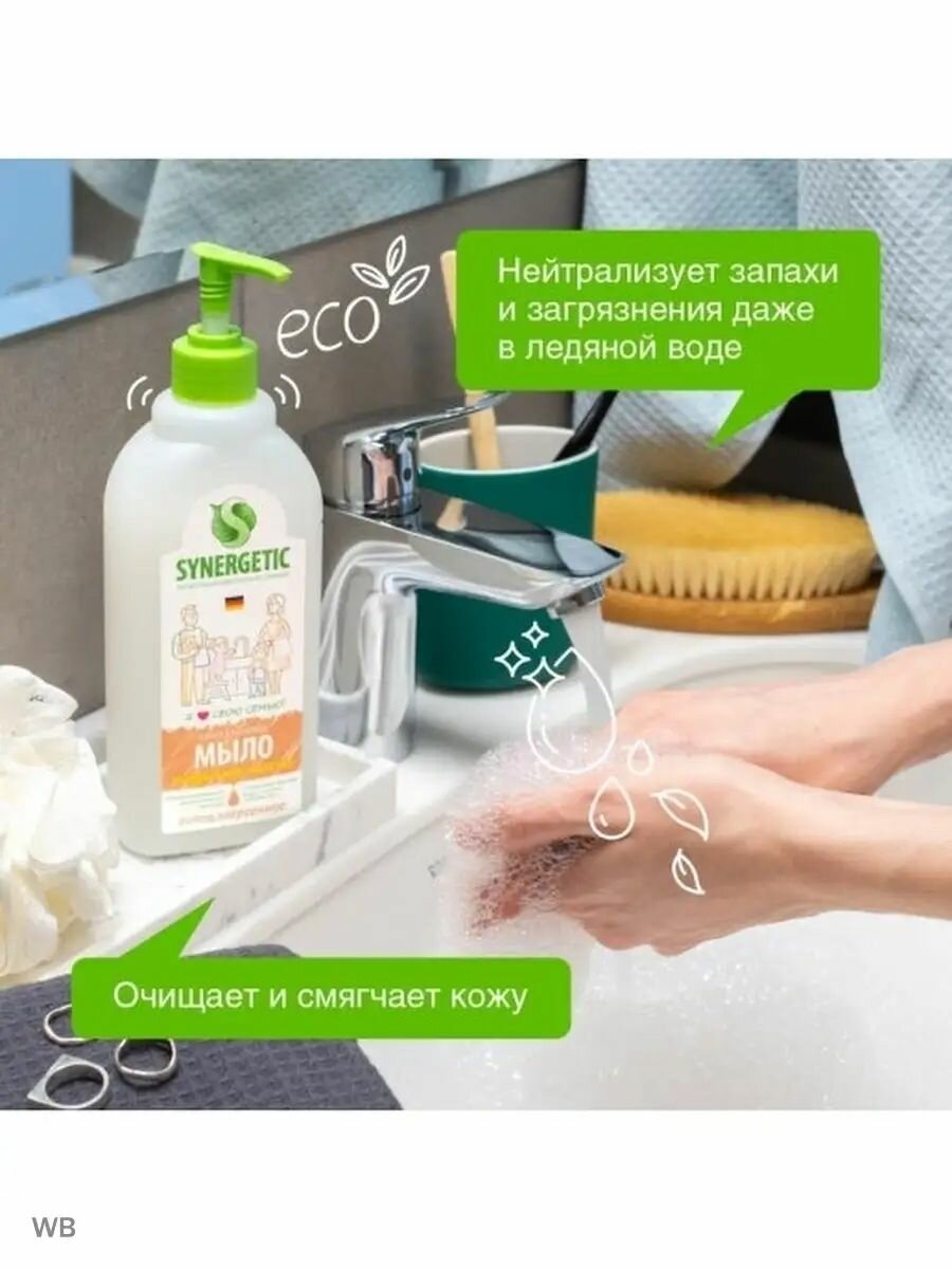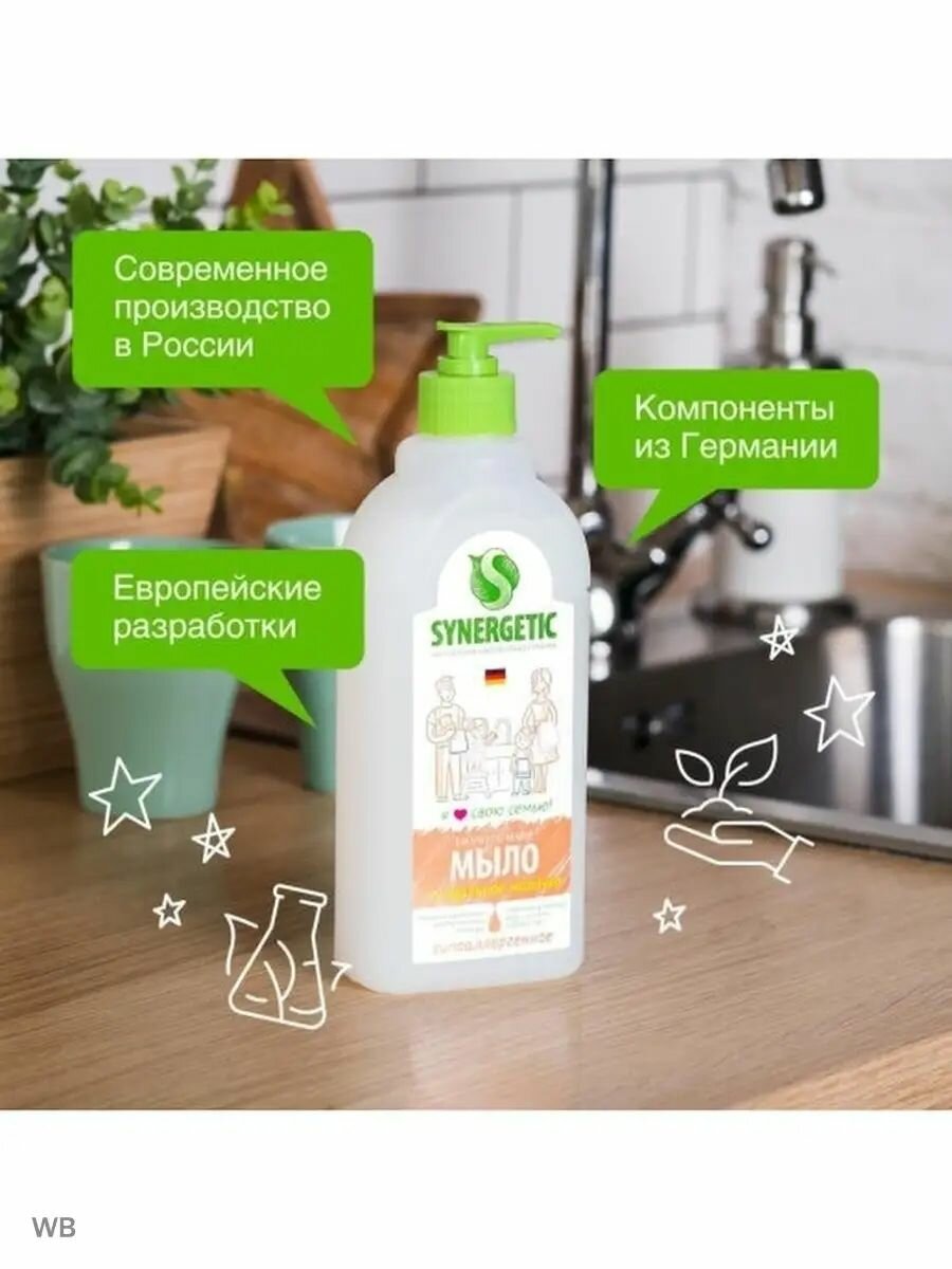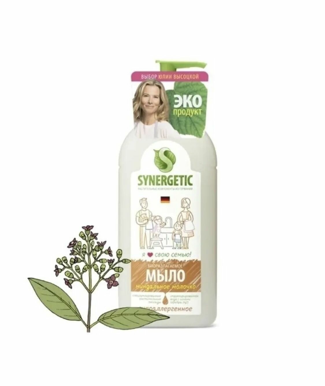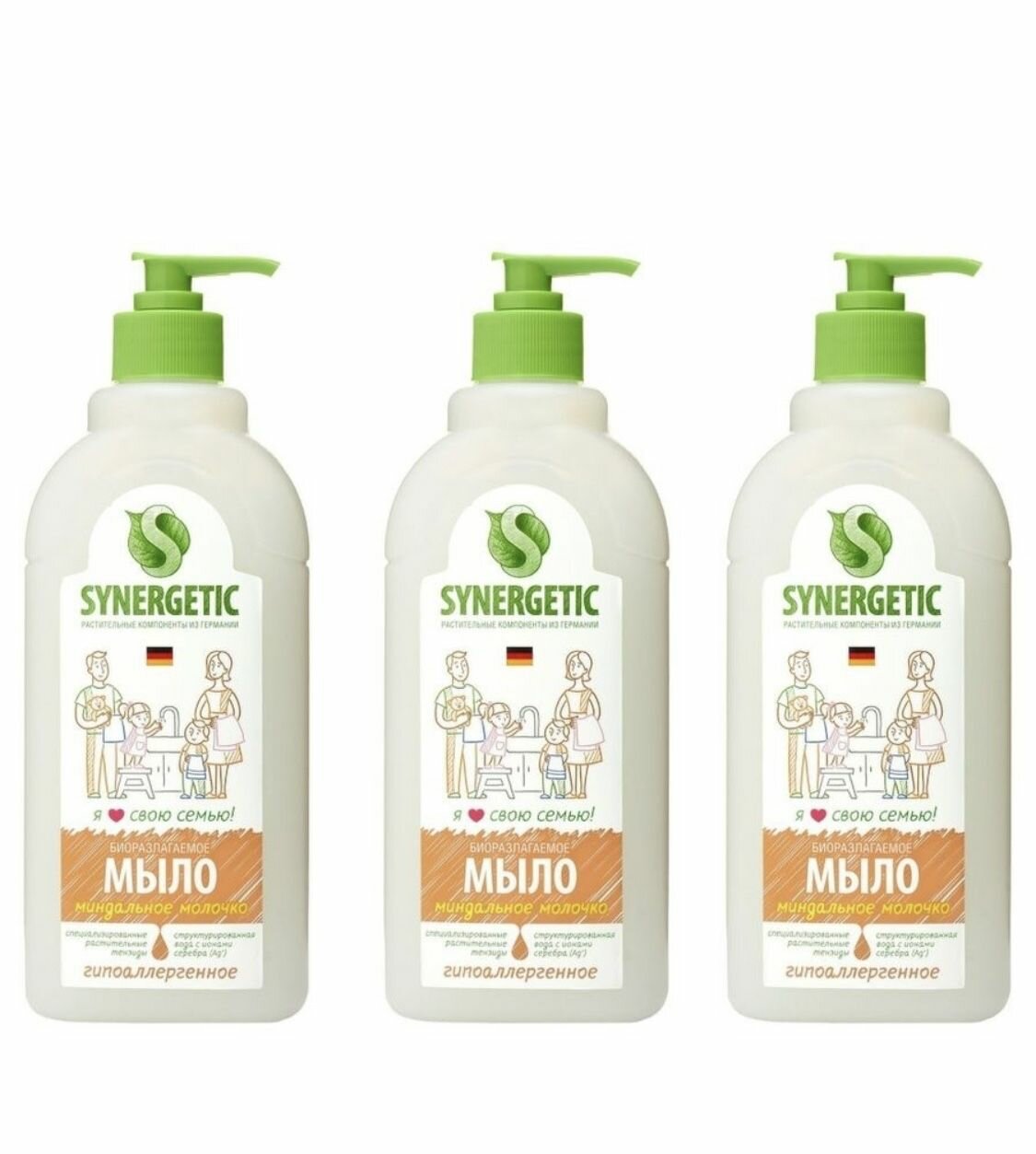 СохранитьНабор из 3 штук Мыло жидкое SYNERGETIC 500мл биоразлагаемое для мытья рук и тела Миндальное молочко интересное: