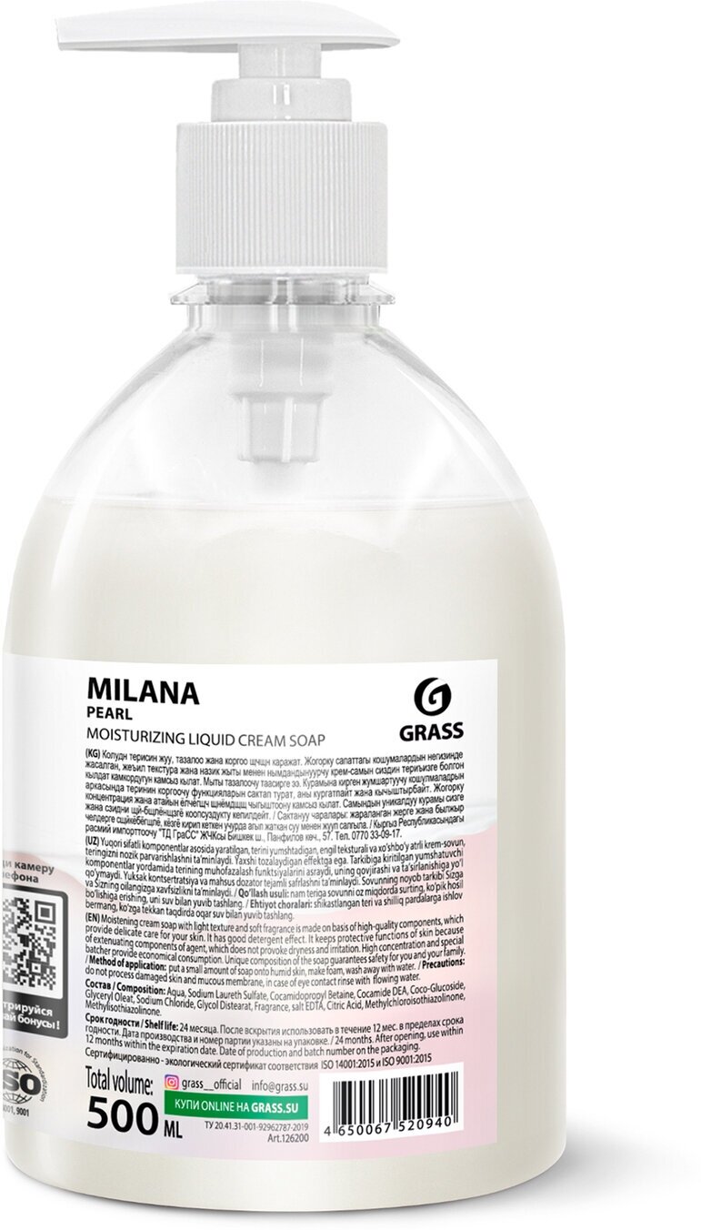 Сохранить126200 GRASS 126200_жидкое крем-мыло 'milana'! жемчужное 500мл с дозатором\ интересное: