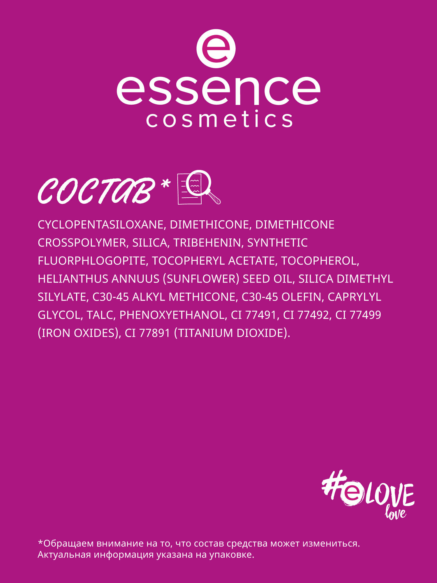 В целом понравился Недостатки: В составе одни силиконы, а по тому может забить поры и послужить причиной возникновения воспалений. Соответственно требует тщательного очищения кожи после себя. Дает на коже красивое бархатное покрытие. Можно наслаивать до очень плотного покрытия. Не требует дополнительного использования консилера. Оттенок 01 не плохо подходит для очень светлой кожи, адаптируется. |
