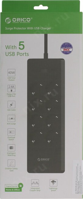 Сетевые фильтры и удлинители Сетевой фильтр Orico Hpc-8a5u-bk Black .