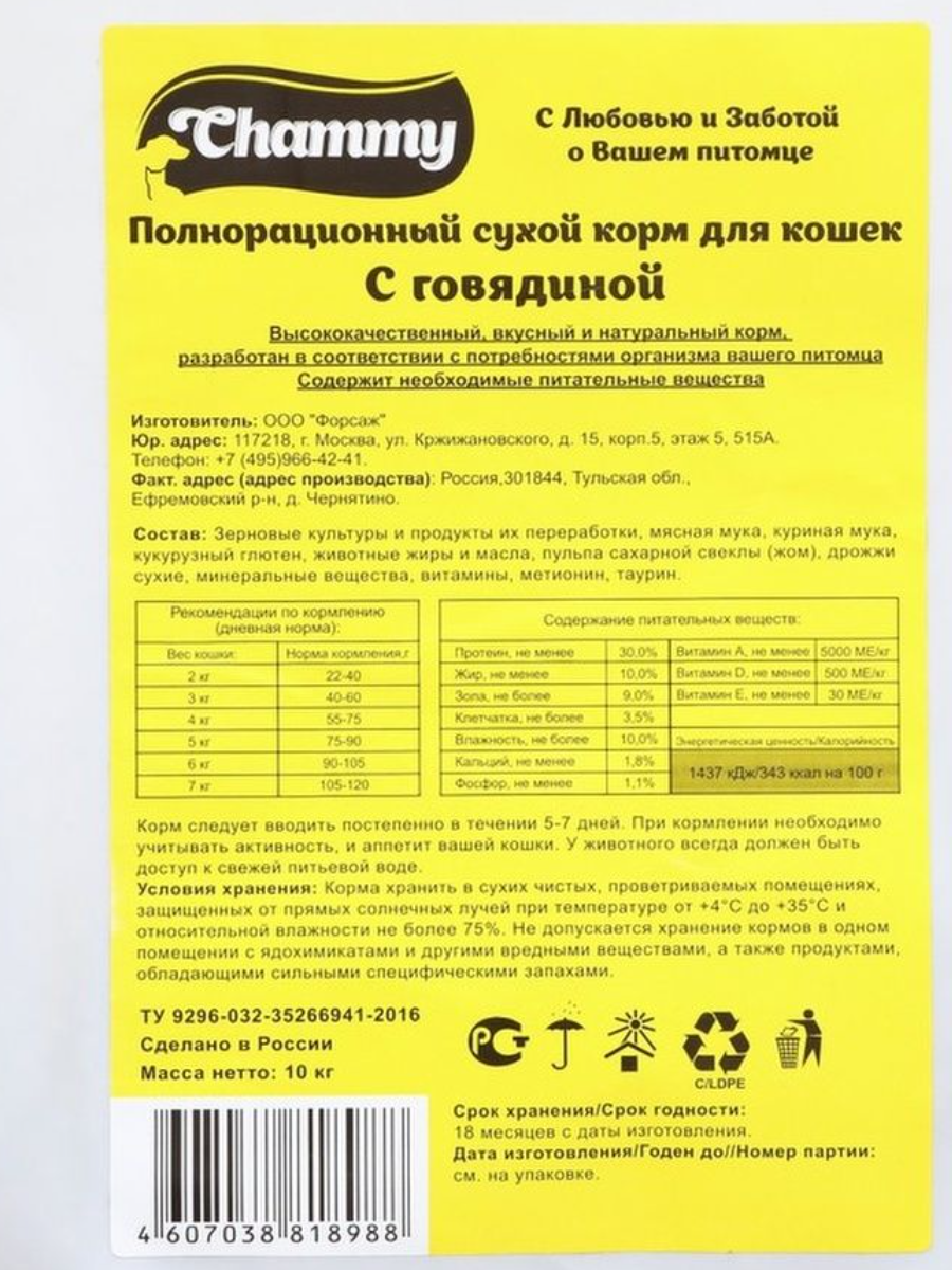 СохранитьChammy Сухой корм Chammy для кошек, с говядиной, 10 кг интересное: