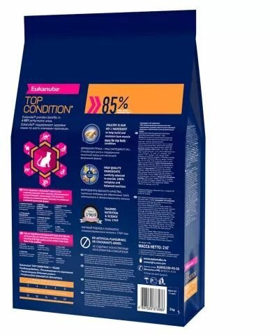 Eukanuba TOP CONDITION для взрослых кошек, домашняя птица 2кг.