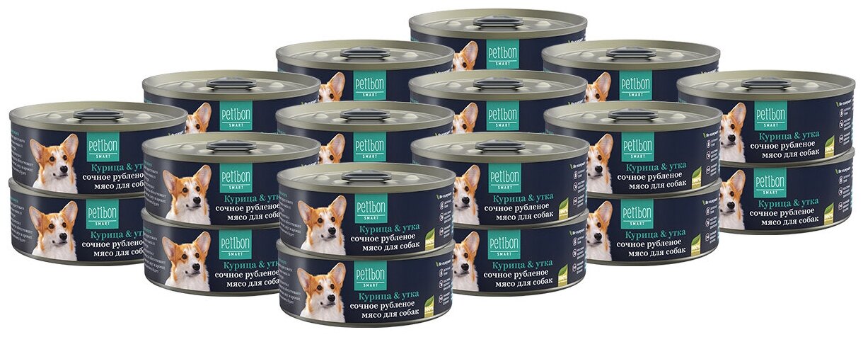 Petibon Smart влажный корм для взрослых собак, рубленое мясо с курицей и уткой, в консервах - 100 г х 24 шт