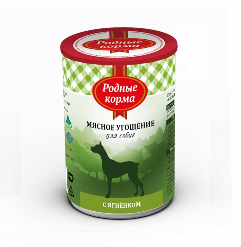 Консервы родные корма Мясное угощение для собак с ягненком 340г 64599