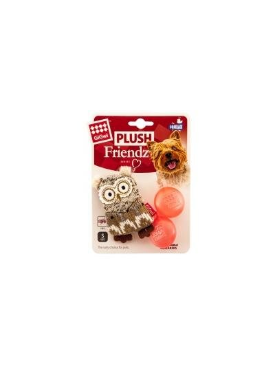 Игрушка для собак GIGWI Plush Friendz Сова с 2-мя сменными пищалками, коричневая (10см)