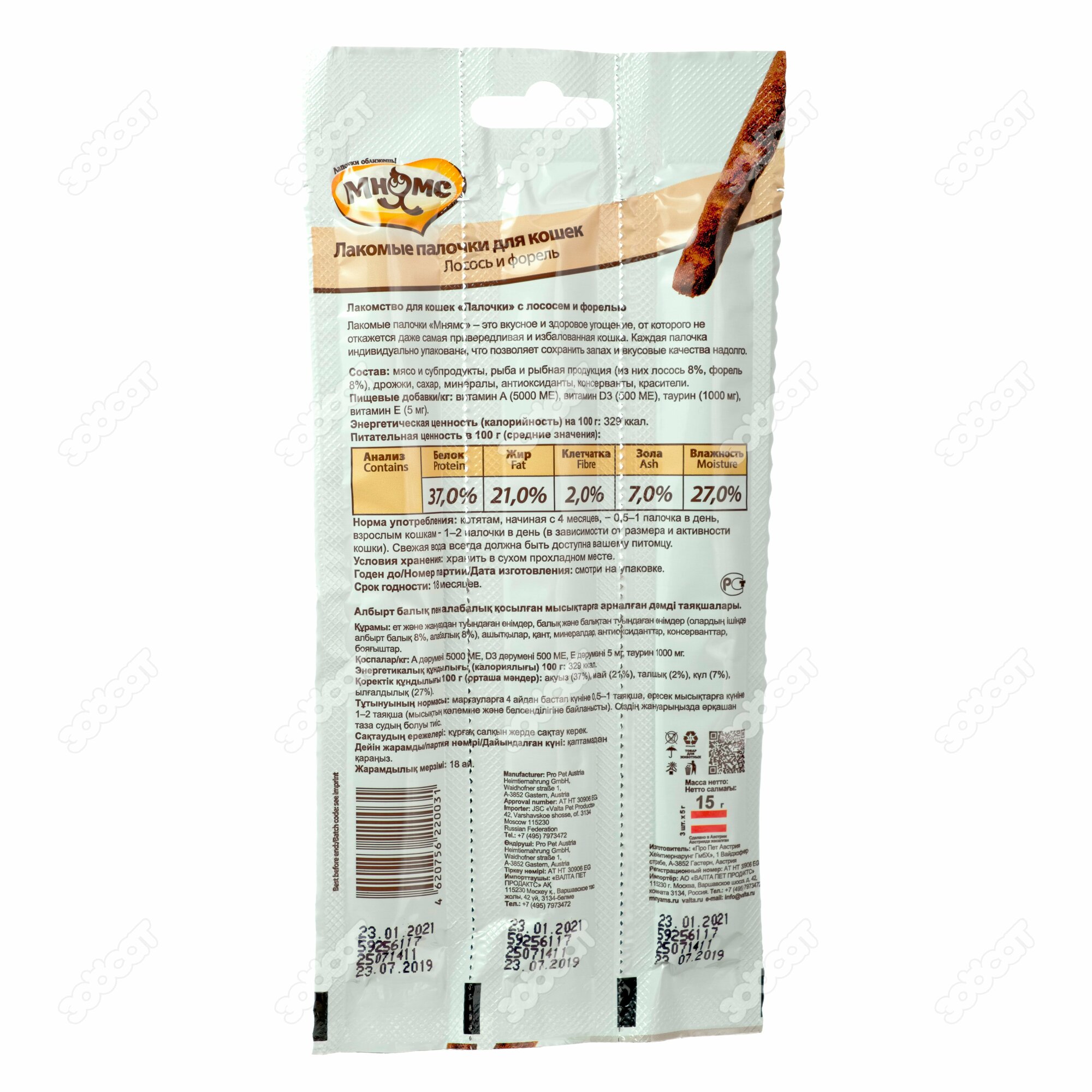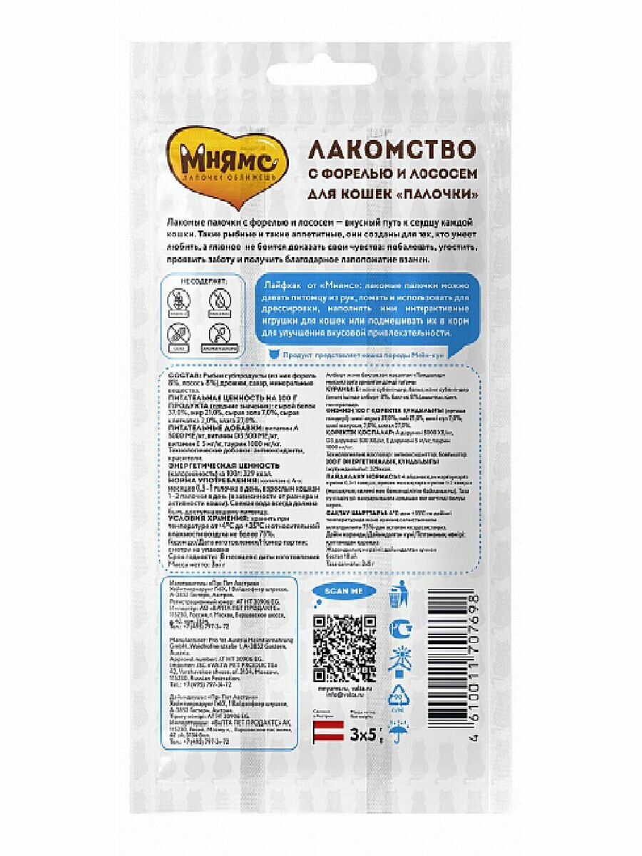 Мнямс палочки для кошек с лососем и форелью 13,5 см, 3 шт. х 5 гр.