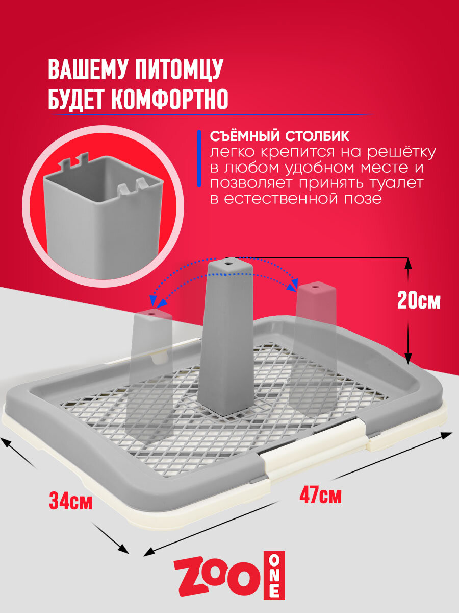 Туалет (лоток) для собак ZooOne со столбиком 47*34*6(20) см малый (серый) P159-04