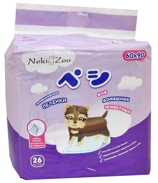Пеленки для домашних животных NekiZoo гигиенические впитывающие, одноразовые, гелевые, с липучками, размер 60х90 см, 26 шт./упаковка"