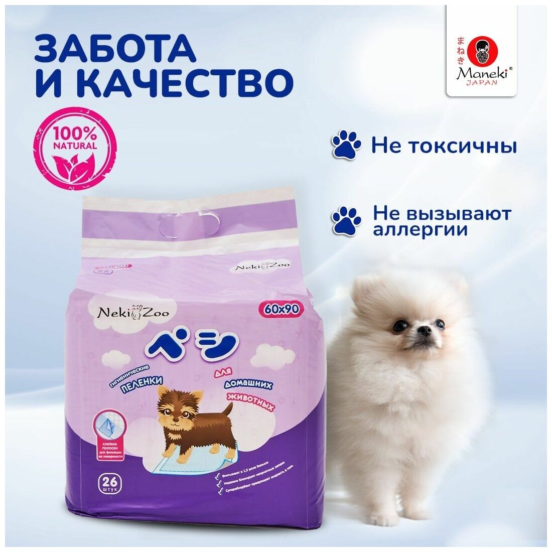 Maneki Пеленки для собак впитывающие NekiZoo 60х90см. (26 шт/уп)