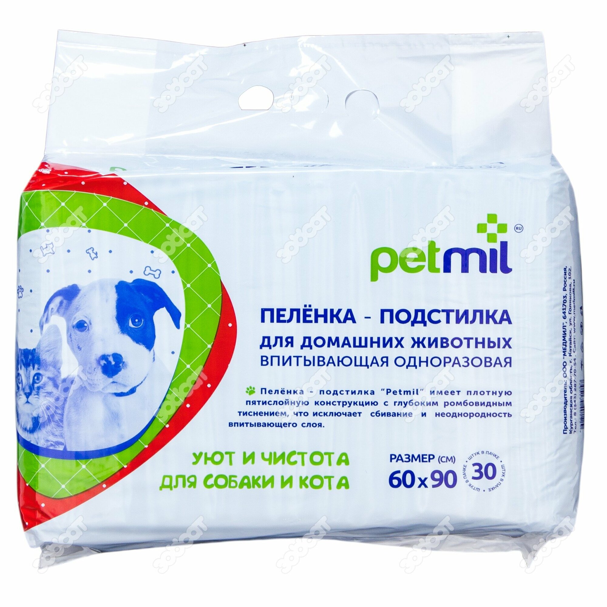 Купить Петмил Пеленка впитывающая одноразовая 60*90*30шт 20%