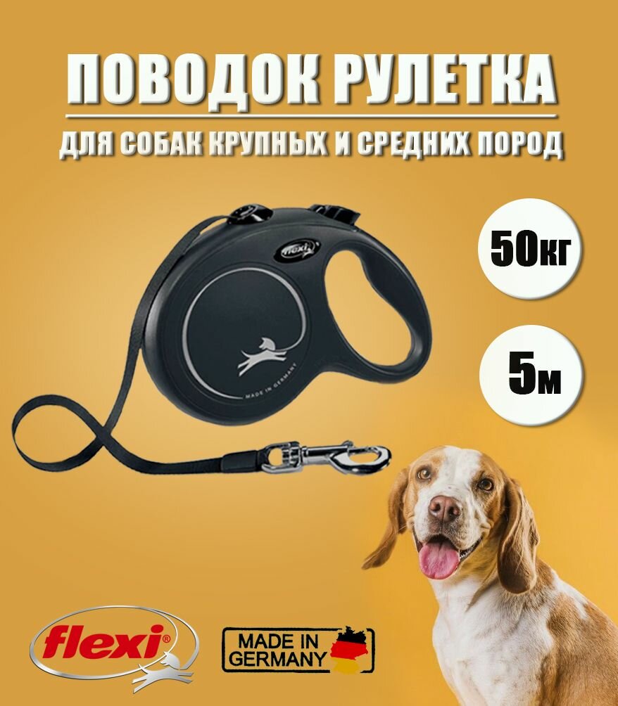 Купить flexi рулетка New Classic L (до 50 кг) лента 5 м черная