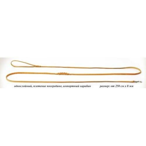 Аркон п8д/ 30701 Поводок кожаный 8 динный, размер 250 см x 8 мм, цвет натуральный, п8д, однослойный, плетение посередине, импортный карабин