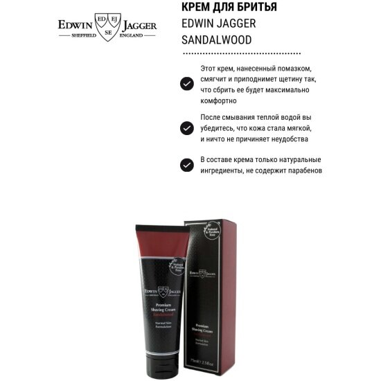 Крем для бритья Edwin Jagger Sandalwood, 75 мл интересное: