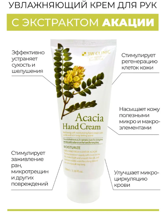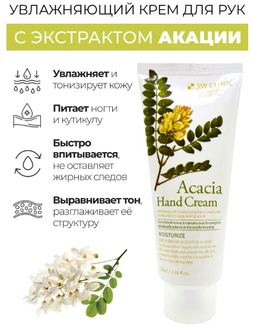 Купить Увлажняющий крем для рук с экстрактом акации 3W Clinic Moisturizing Hand Cream Acacia 100ml