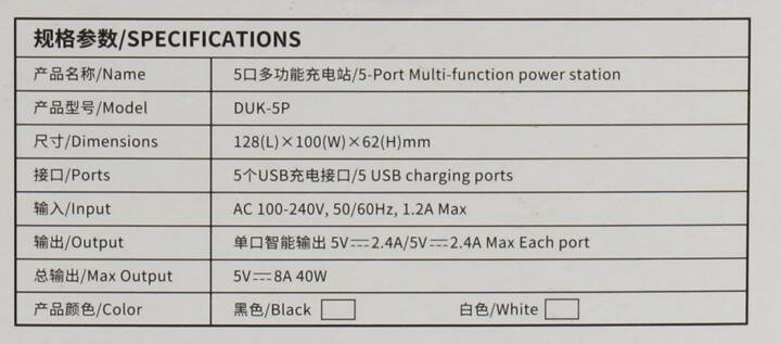 Зарядное устройство для телефона 5 USB(DUK-5P-BK)
