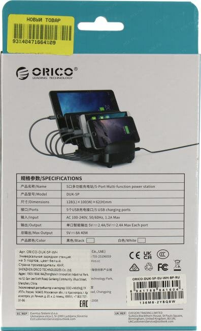 USB-зарядка Orico DUK-5P-BK